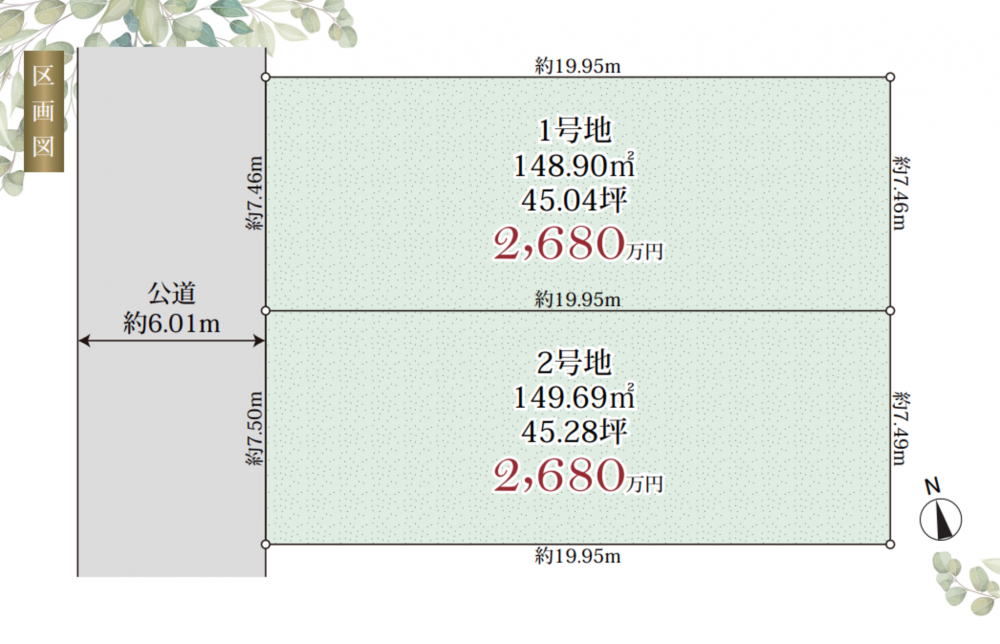 - 西側 公道6m 間口約7.4m